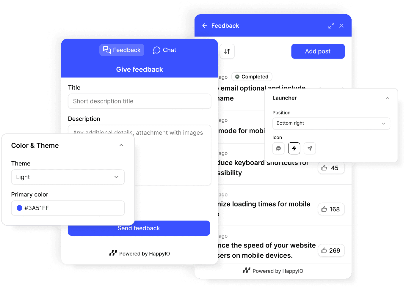 Add a widget to your app so users can share feedback, check updates, and see what’s next—without switching tabs.